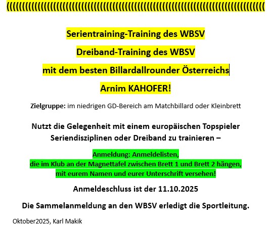 Schnupperbesuch CARAMBOL-BILLARD in der WBA